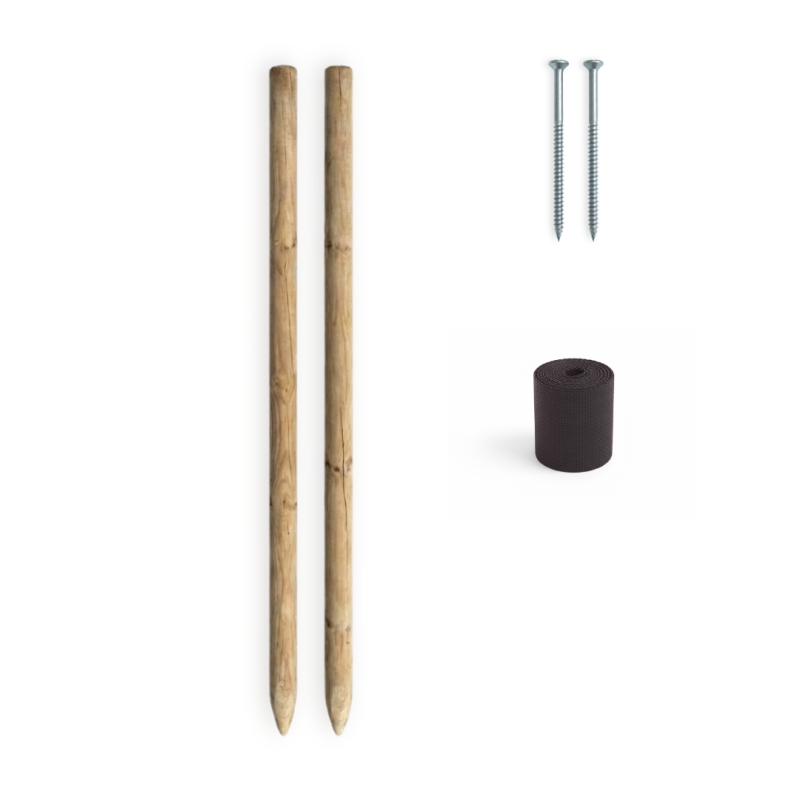 Deze set is ontworpen om pas aangeplante bomen stevig te ondersteunen en te beschermen tegen harde wind en andere externe invloeden. Perfect geschikt voor zowel beginnende als ervaren tuinliefhebbers. Onze palen zijn 2.20m lang en 5cm dik.