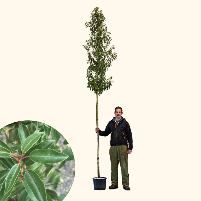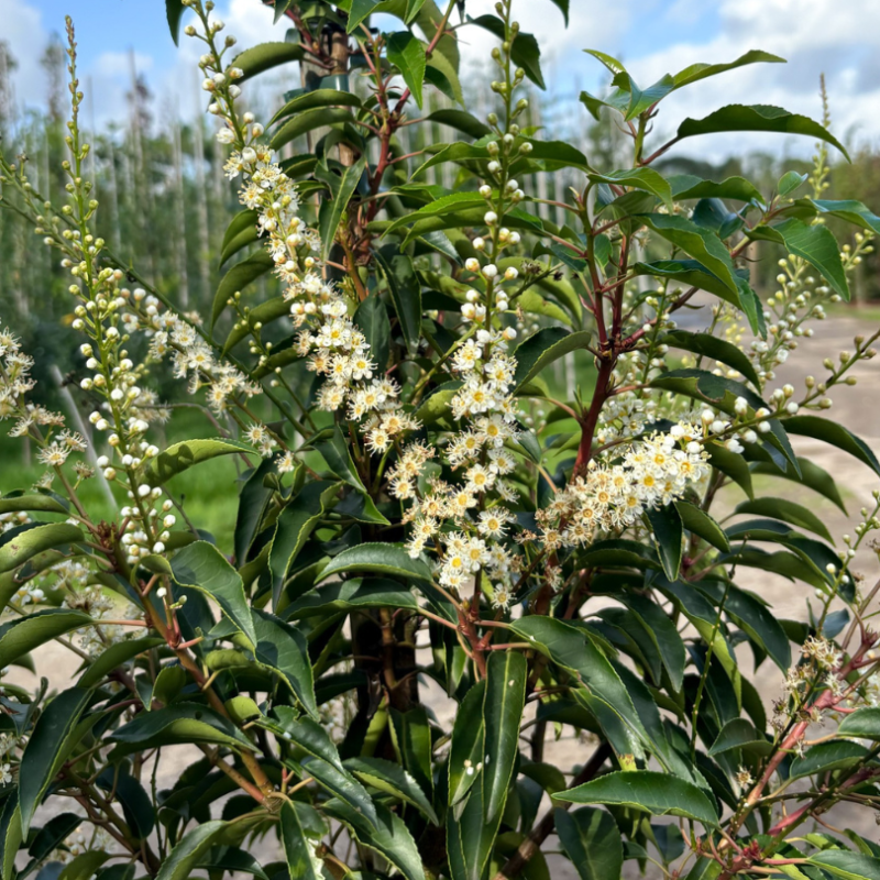 De Prunus lusitanica angustifolia is een exclusieve lauriersoort die zich onderscheidt door zijn smalle, glanzende blad en rustige groei. Deze boom wordt veel gekozen door mensen die op zoek zijn naar privacy met klasse, zonder de grove uitstraling van standaard lauriersoorten.