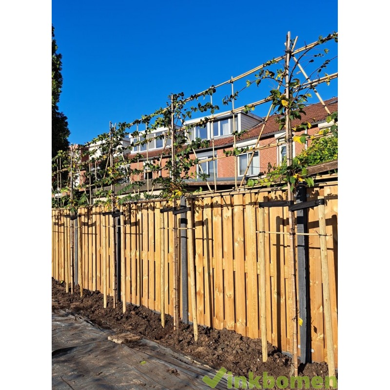 Gebruik een boompalenset om de leiboom stevig te verankeren. Dit voorkomt scheefgroei, vooral in de eerste groeijaren.
