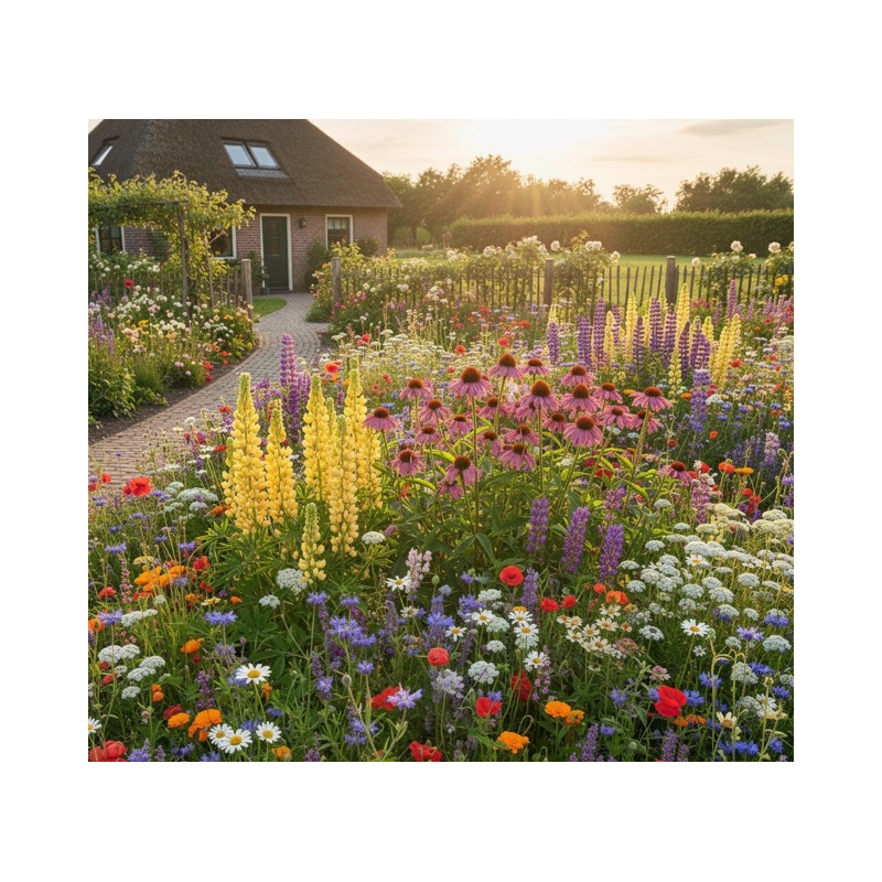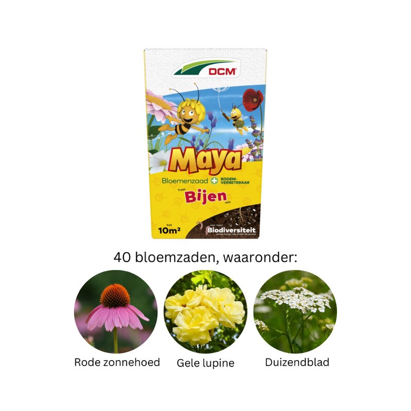 DCM Bloemenmengsel Bijen bevat meer dan 40 verschillende bloemenzaden, zoals rode zonnehoed, gele lupine en duizendblad. Het mengsel is ontworpen om bijen, hommels en andere bestuivers aan te trekken, wat bijdraagt aan een betere oogst en biodiversiteit.