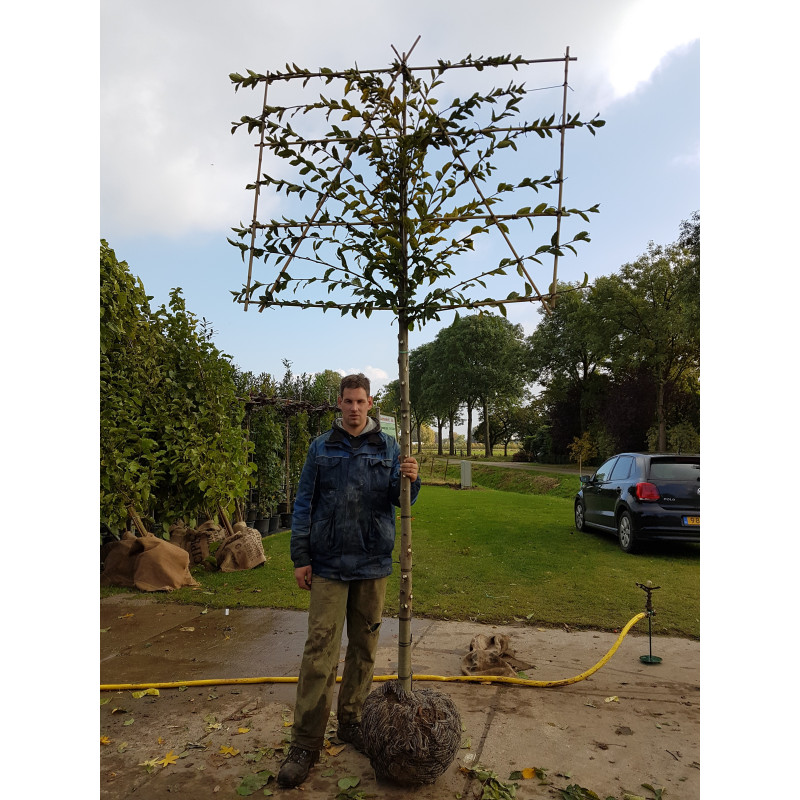 Ook de Carpinus Fastigiata behoudt vrij lang zijn blad, maar toch verliest de boom uiteindelijk zijn bladeren. Ondanks het verliezen van zijn bladeren vormt hij in de winter nog een vrij dicht scherm. Het voordeel van de leibeuk is dat de boom stijlen omhoog staande takken heeft. Hierdoor blijft het als leiboom zeer smal en vormt snel een scherm tegen inkijk en zon-wind. Deze leibeuk leveren wij ook met een vol scherm en standaard met kluit voor de beste doorgroei.