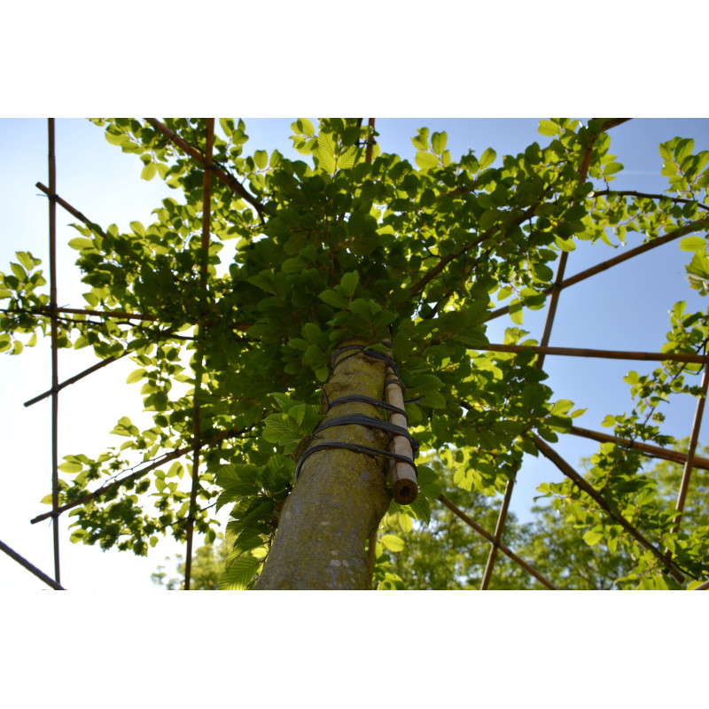 Het beste is om de dakbeuk in de zomer of wintermaanden met de heggenschaar of snoeischaar terug in model te brengen. U blijft dan ongeveer 5 cm bij de harttak en bamboescherm vandaan. U kunt de dakbeuken, net als de beukenhaag, meerdere malen per jaar scheren om een zeer dicht en vertakt scherm te behouden. Wij raden aan om jaarlijks het bindbuis te controleren tegen ingroeien in de takken. Indien deze dakbeuk jaarlijks wordt gesnoeid, blijft het verdroogde blad in de regel tot diep in de winter aan de plant hangen. Het verteerde blad is een goede bodemverbetering voor uw tuin. Deze boom zorgt in de winter voor een redelijk dicht dak.