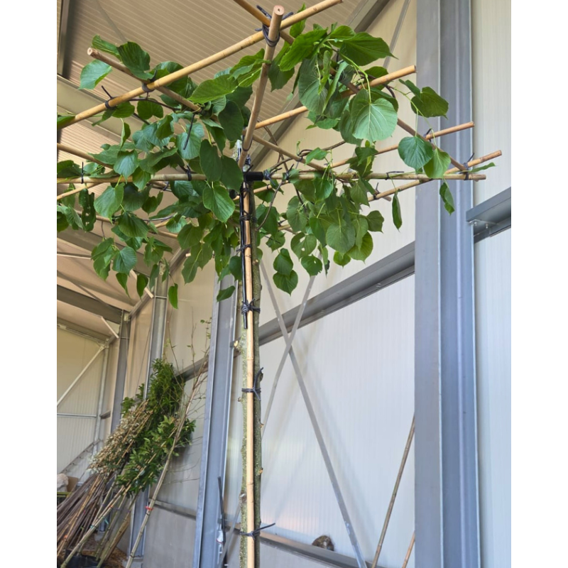 • Elegante dakvorm: De daklinde onderscheidt zich door zijn elegante dakvorm, waarbij de takken horizontaal zijn geleid en het bladerdak een golvende, gestructureerde uitstraling heeft. Deze vorm maakt het een opvallende en sierlijke toevoeging aan elke tuin of landschap.