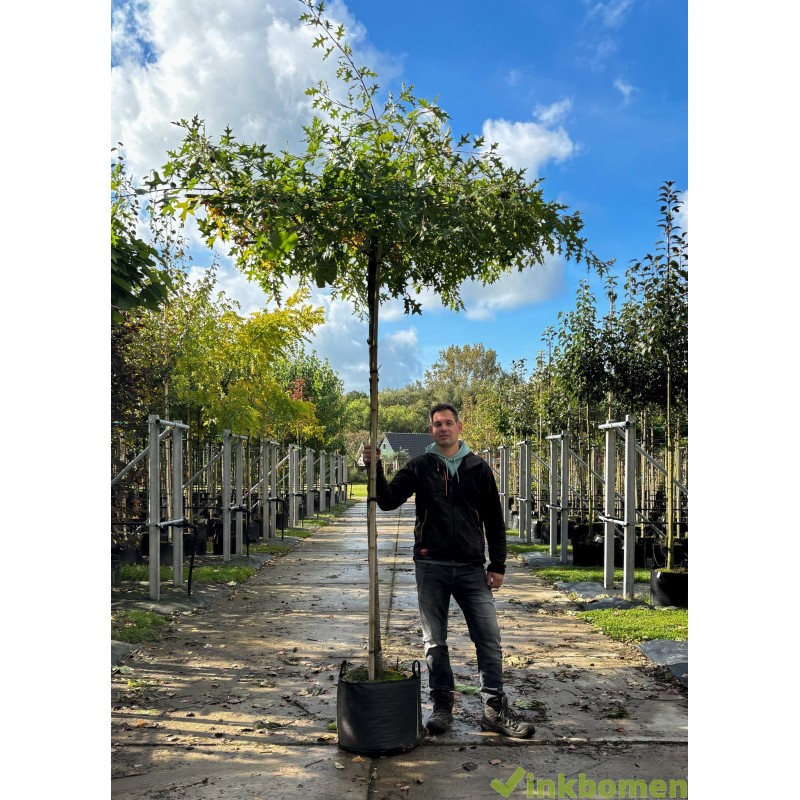 Deze moeraseik in dakvorm is een prachtige aanwinst voor uw tuin. Met zijn majusteuze groeivorm, prachtige herfstkleuren en tolerantie voor natte grond voegt de moeraseik een onmiskenbare schoonheid en karakter toe aan elke tuin of landschap. Met de juiste verzorging zal deze indrukwekkende boom vele jaren lang een betoverend middelpunt vormen.