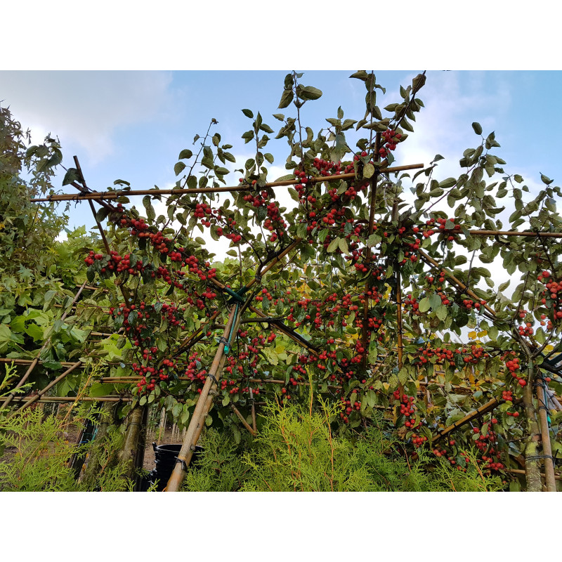 • Sierappeltjes: Na de bloei ontwikkelt de boom kleine rode appeltjes die tot ver in de water aan de boom blijven hangen, waardoor hij ook in het najaar en de winter visueel aantrekkelijk blijft.