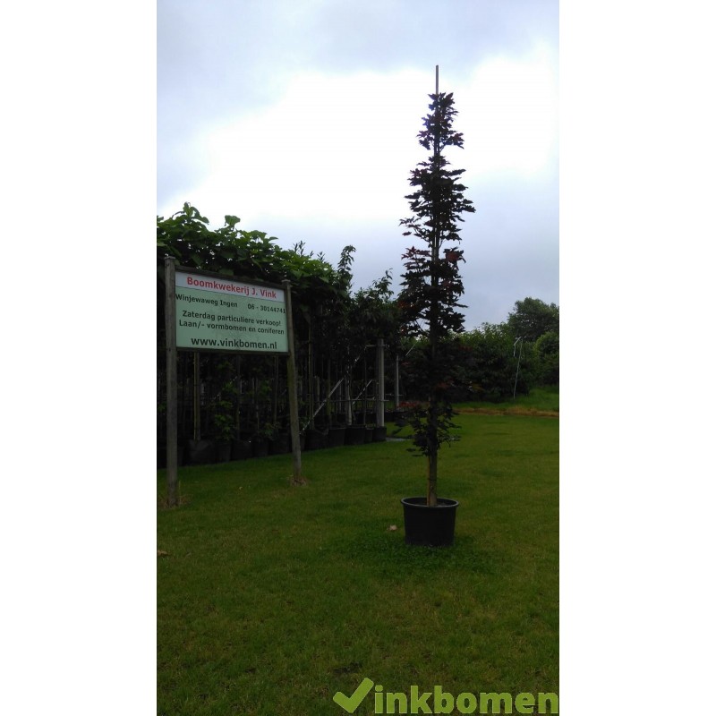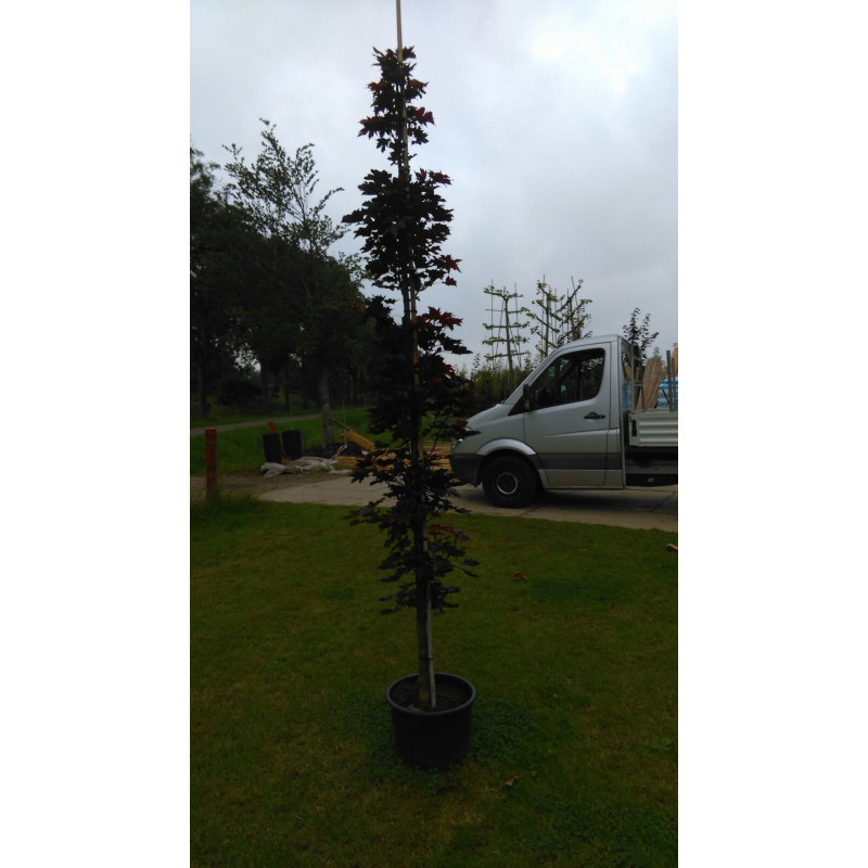 De Noorse esdoorn is een middelgrote boom met mooi, donkerrood en glimmend blad. Deze boom past goed in kleinere tuinen, want hij blijft redelijk smal. Ook groeit de boom goed op vrijwel elke grondsoort. Met zijn opvallende paarse bladeren en zuilvormige groei voegt deze prachtige boom een stijlvolle touch toe aan elke buitenruimte.