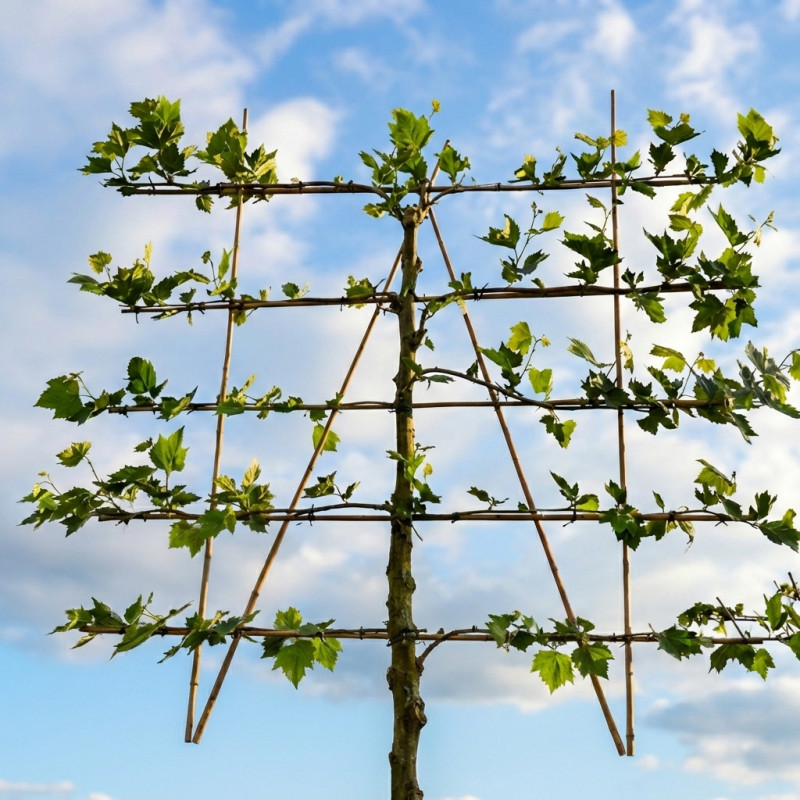 • Wintersnoei: Snoei in de winter alle takken terug tot de hoofdtakken. Dit stimuleert nieuwe groei en zorgt ervoor dat de boom zijn strakke leivorm behoudt.